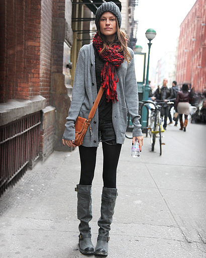Layer: Boots - wear extra long colorful or neutral color socks or leg warmers, longer than your boots and let them show, for short sleeve dress - wear a long sleeve shirt under it or over your dress, intertwine two different color scarves keep your neck warm and cozy.
